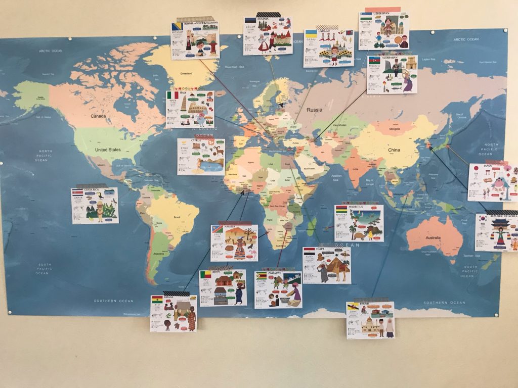 彼に感化されて、大きな世界地図を教室に掲示しました。