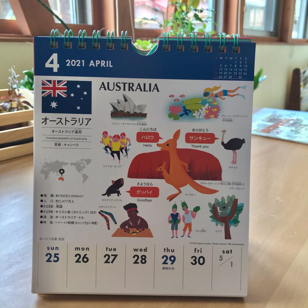 『世界えじてん』カレンダーには、「こんにちは」「さようなら」「ありがとう」がその国の言葉で紹介されていて、中学2年生クラスの生徒さんたちは、レッスンが終わると「ド ポバーチェンニャ」(ウクライナ語)などと言って帰っていきます。