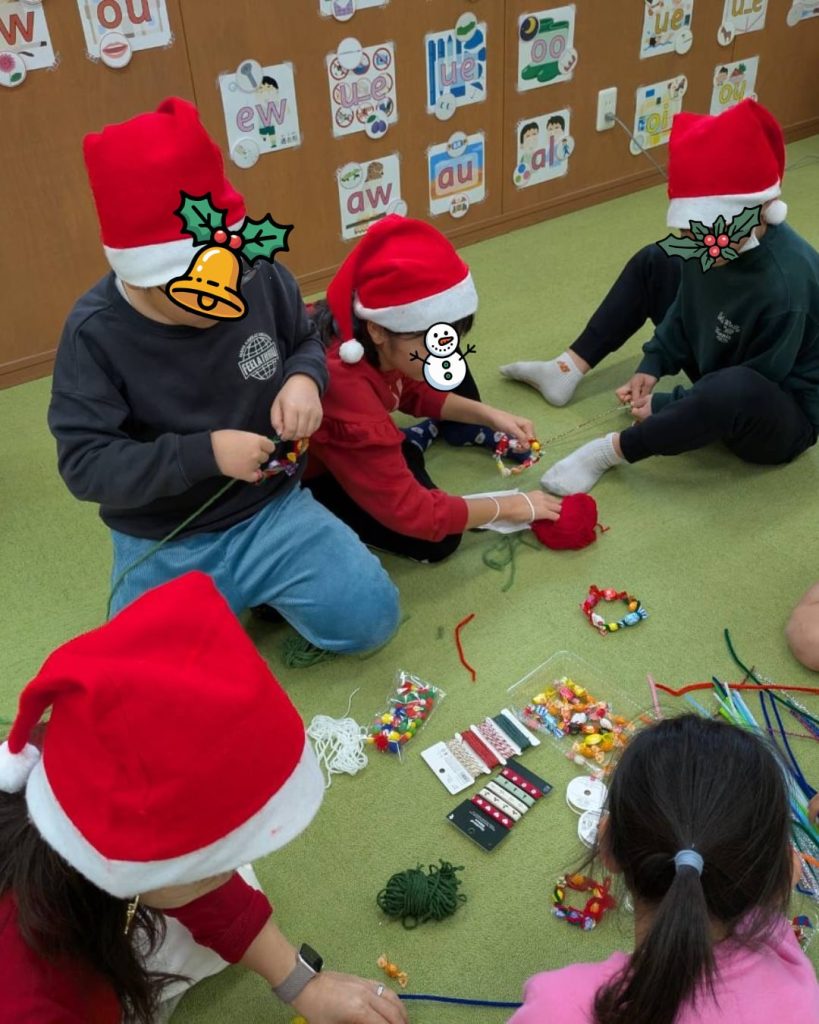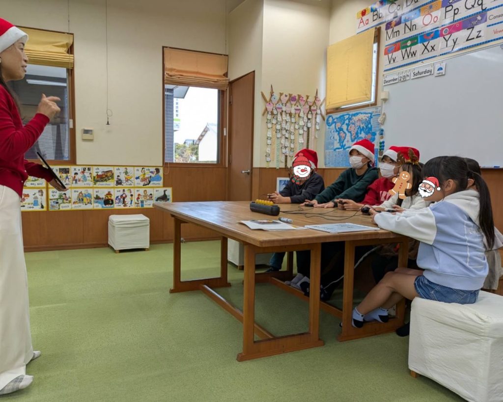 昨年12月20日(土)、教室でクリスマスパーティーを開催しました。子どもたちはサンタ帽やトナカイのカチューシャを身につけ、笑顔いっぱいです。教室はクリスマスの飾りで彩られ、わくわくした雰囲気の中、楽しいアクティビティが始まりました。